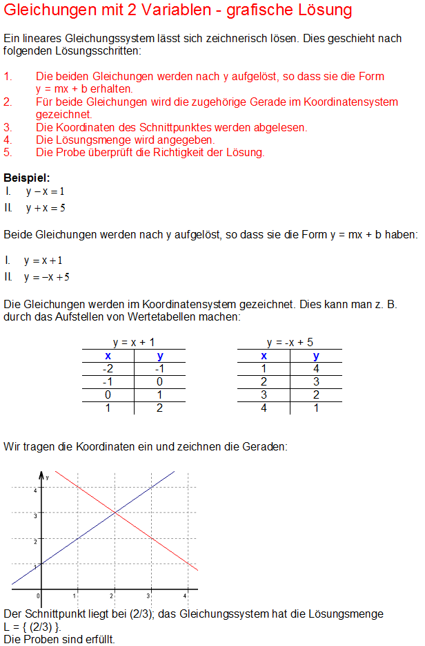 Lineare Gleichungssysteme - grafisches Lösungsverfahren