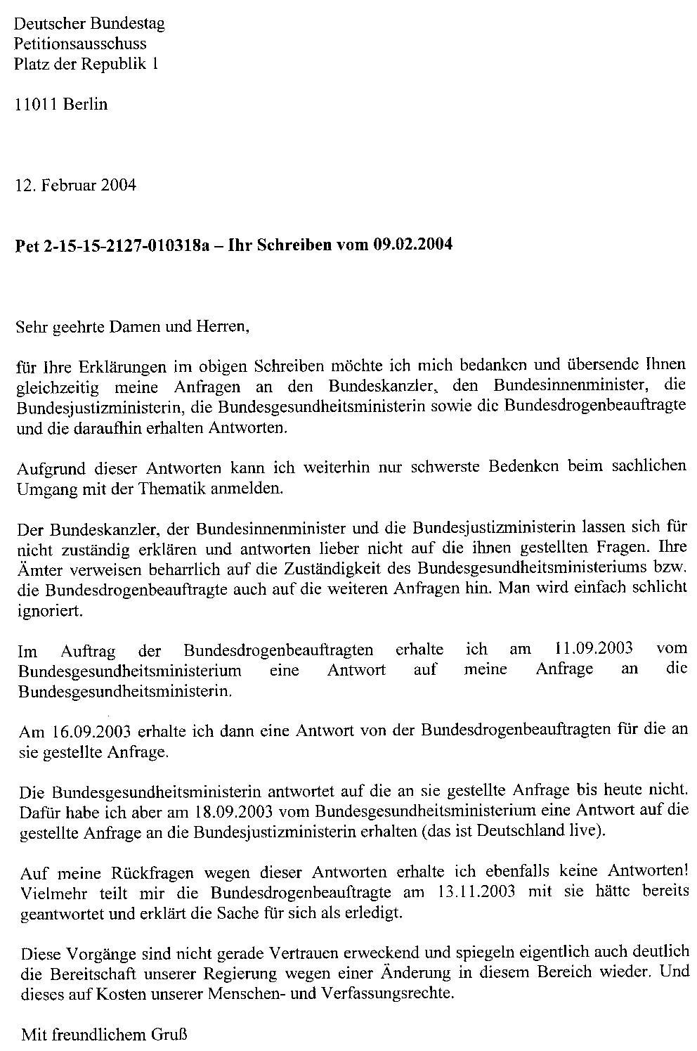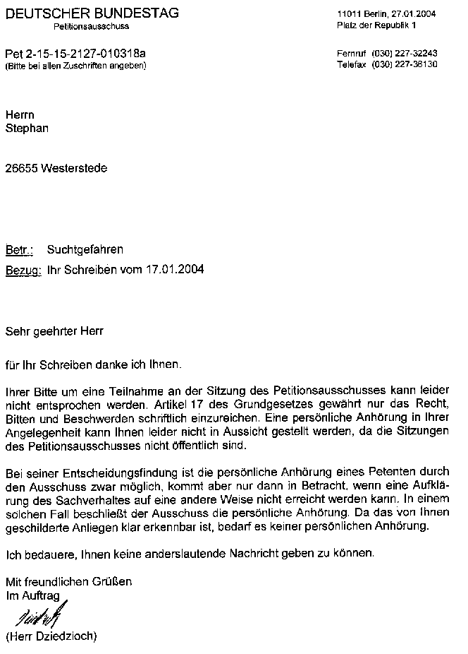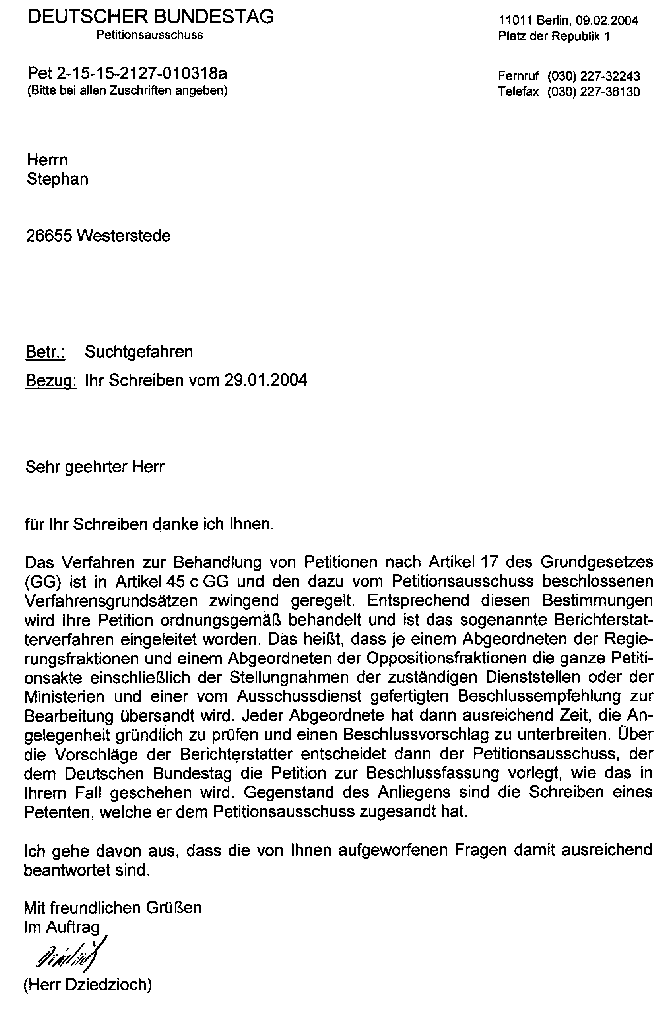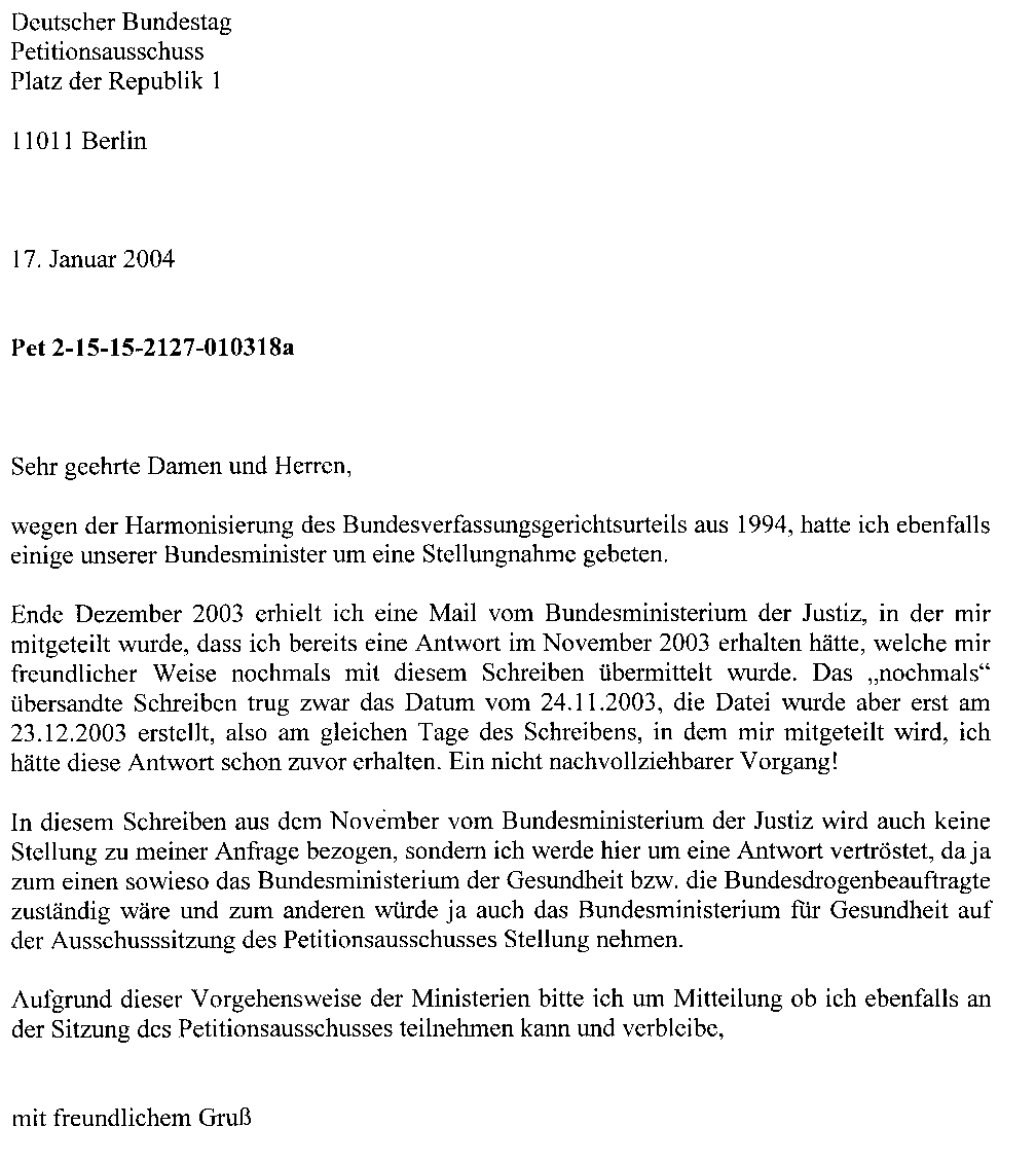 Eine Mail an den Petitionsausschuss vom 11.06.2004