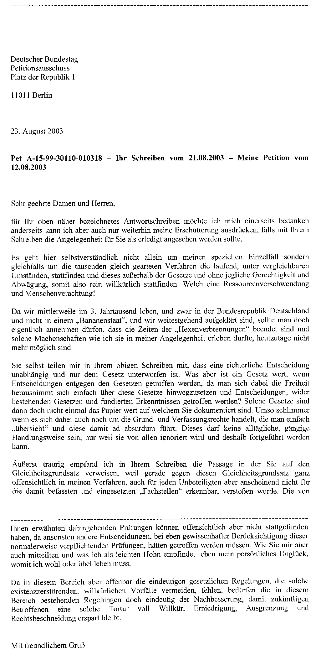 Weitere Gründe für die Petition vom 23.08.2003