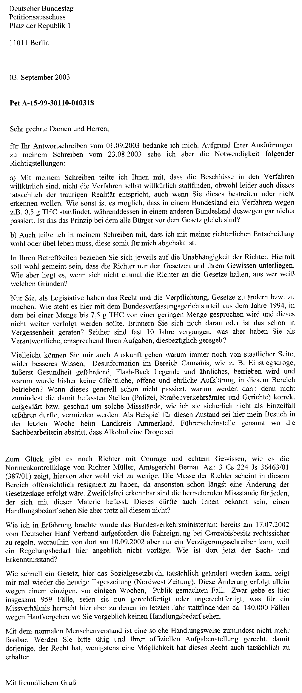 Noch mehr Gründe für die Petition vom 03.09.2003
