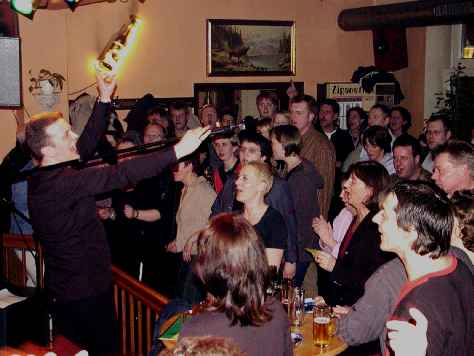16.03.2002 und 19.04.03: SIX PACK Rock-Cover-Band vom Feinsten Bekannt und beliebt durch ihre heißen Parties! Seit über 10 Jahren sind sie auf den Bühnen Deutschlands unterwegs, die 6 Musiker der Cover-Rock-Band SIX PACK: Ob Oldie-Nights, Stadtfest oder andere Parties, dieses "Pack" sorgt für einen gelungenen Abend. Schwerpunktmäßig spielen sie die Rock-Klassiker der 70er, 80er und 90er Jahre, wie den Stones, Jackson Brown, Lennon, Springsteen, Tom Petty... . Und das war nicht nur ein Oldie-Abend, vielmehr wurde eine begeisternde Show geboten, und die Stimmung war fast nicht zu bremsen. Leider mußten wir auch an diesem Abend wieder feststellen, daß an so manchen Konzerten eine Kartenreservierung zu empfehlen ist. Mindestens vierzig Gäste mußten leider draußen warten. Die meißten mit Verständnis für die Situation, und weil das Wetter ja gerade danach war, wurde eben draußen mitgefeiert. Und als dann die ersten Gäste so gegen Mitternacht gehen mußten, weil sie am nächsten Tag noch was vorhatten, konnten auch die anderen mit rein und bis zum Schluß mitfeiern. Und die sechs Jungs haben sich nicht Lumpen lassen, auch wirklich bis spät in die Nacht alles zu geben und haben die brodelnde Stimmung so richtig genossen. Danke, Jungs. Danke, Gäste. Danke, Mädels, die ihr so fleißig für Nachschub gesorgt habt. Es war ein toller Abend!