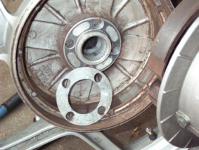 Hierzu musste ich mir einen Distanzring anfertigen. Die Radbolzen