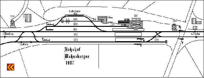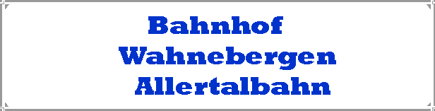 Den Bahnhof erhielt Wahnebergen erst um 1900 mit dem Bau der "Allertalbahn", der eingleisigen Nebenbahn Verden - Schwarmstedt - Celle, die hier aus der zweigleisigen Hauptbahn Bremerhaven - Wunstorf abzweigte.Die Funktion als Umsteigebahnhof endete schon 1963. Die Personenzüge der Hauptbahn hielten nicht mehr in Wahnebergen. Drei Jahre später wurde auch der restliche Personenverkehr, der Schienenomnibusverkehr auf der " Allertalbahn", eingestellt. Während das Empfangsgebäude und der Güterschuppen bald darauf verschwanden, existierten die Ladegleise noch längerer Zeit. 1995 wurde die Strecke nach Rethem abgebaut; nun sind nur noch vier Weichen zum Gleiswechsel und der Bahnübergang vorhanden. Betrieblich gesehen ist der Bahnhof Wahnebergen heute nur noch eine Überleitstelle, die von Verden ferngestellt wird. Der Bahnübergang wurde zum 21.12.2000 durch einen Tunnel ersetzt.