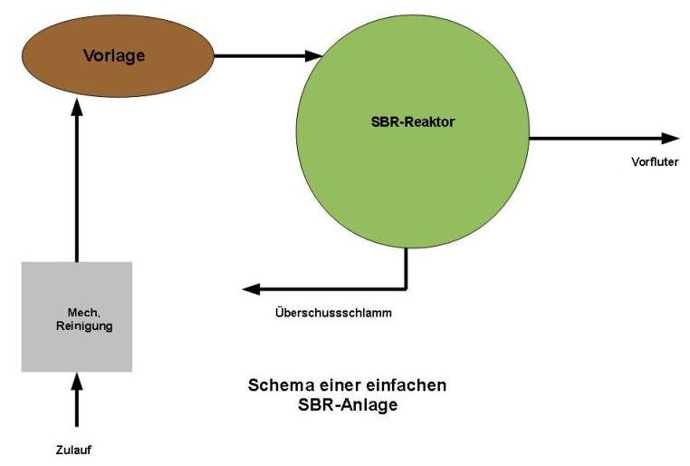 Dazu gehören noch Pumpen zur Rück- und Überschussschlamm Förderung sowie Rezirkulation.Eine SBR-Anlage (Sequencing Batch Reactor) arbeitet dagegen diskontinuierlich.